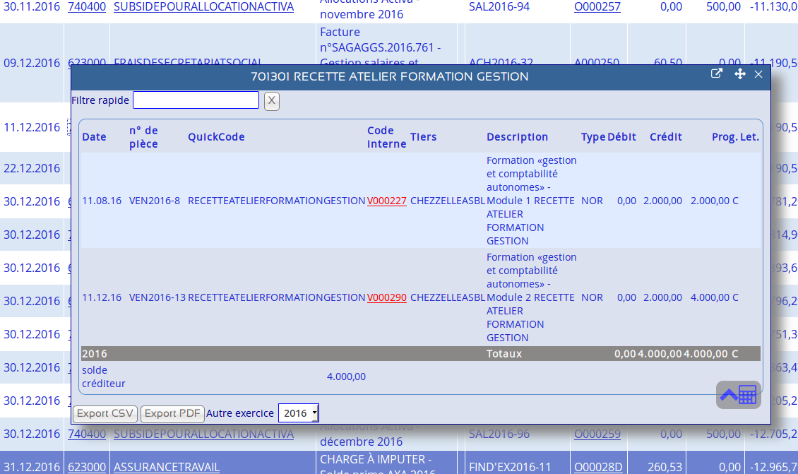 | Description | Quand on affiche l'historique d'un activité en CA en cliquant sur son nom (dans le grand livre, par exemple), celui-ci s'affiche pour l'exercice en cours (dans «préférences») mais sons possibilité d'en changé comme c'est le cas pour les historiques fiches (menu d'exercices déroulant).
