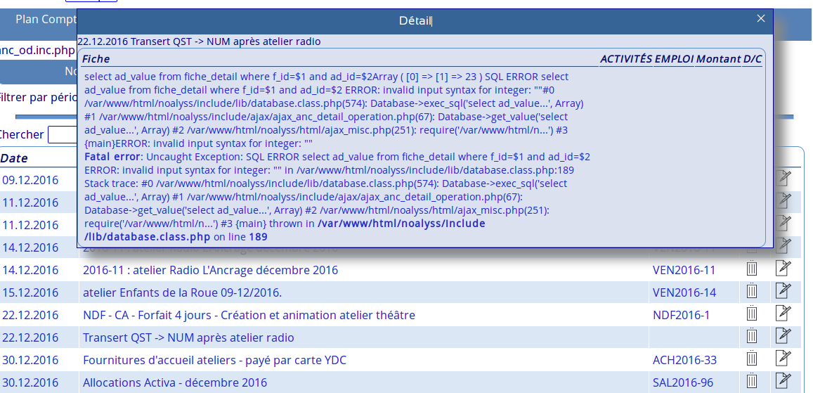 | Description | Dans ANC/ANCODS, j'affiche la liste des opérations (qui sont d'ailleurs toutes les opérations et non seulement les OD) et s'y trouve une OD en CA. Image 1 Ensuite, quand j'essaye de la modifier (cliquer sur le papier-stylo), ce message s'affiche. Image 2 | ||||