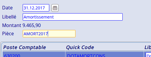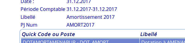 | Description | Création d'une opération d'amortissement. L'intitulé annoncé est «Amortissement N» L'intitulé final est «Amortissement» | ||||