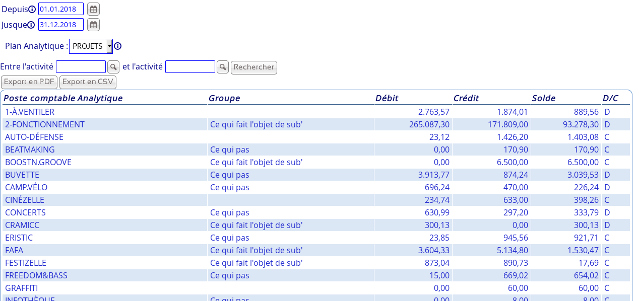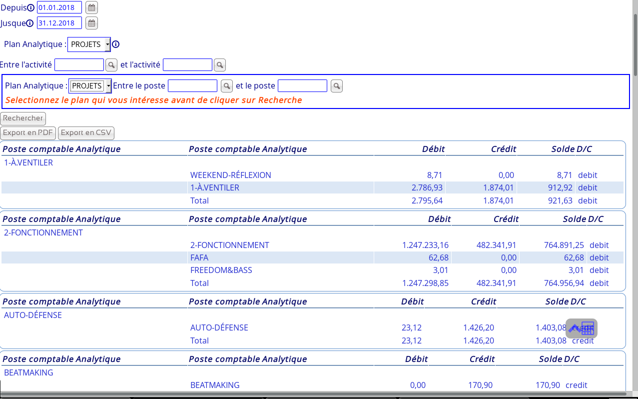 | Description | Dans les impressions analytique, j'ai affiché la balance croisée double d'un plan avec lui-même (il n'y en a qu'un). Il ne devrait pas y avoir de croisement, sinon d'un poste analytique avec lui-même. Or il apparaît à certains endroits des croisements et, de plus, des montants fantaisistes (comme pour «1-fonctionnement», dans les captures). Je ne sais pas d'où ça peut provenir dans le code. Ça ne me semble pas lié à quelconque autre souci avec la CA. | ||||