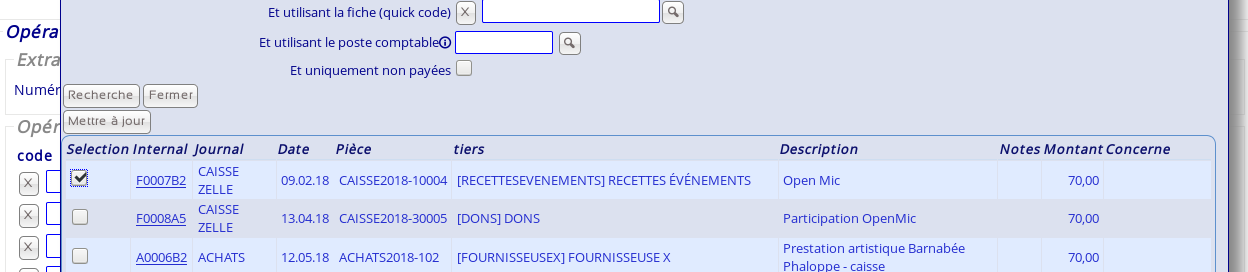 | Résumé | 0001694: Opération FIN: opération liée - code fiche mais pas nom | ||||