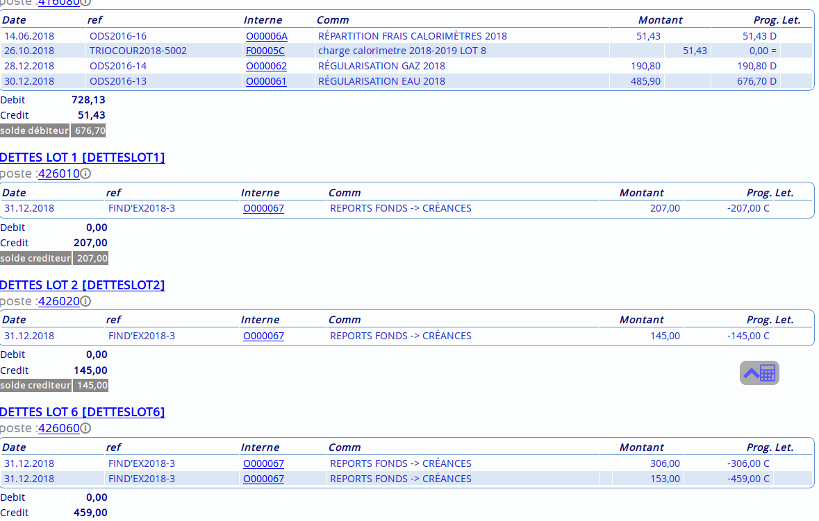 À mon avis, quand même un souci. Historique d'une fiche (ouvir fiche -> bouton «historique»), les montants D et C se soustraient, et le total apparaît avec C ou D, selon. Jamais de signe. Ici, dans la liste de fiche en affichage «historique», l'affichage «- 0,00 C» est un souci. De manière générale, en CG, il est préférable de ne jamais avoir de signe. Exception pour les opérations usuelles telles qu'achat, vente et trésorerie, par facilité. Mais les affichages comptable devraient seulemant indiquer D ou C. (Le «=» après un solde nul avait été supprimer à d'autres endroits. S'il ne semble pas indispensable, il peut être retiré partout; sinon, il serait bon de le remettre partout par cohérence. Je jette un œil pour voir où il apparaît et où non.) |