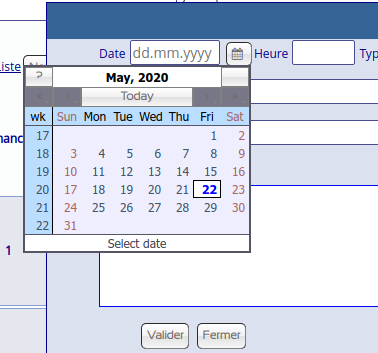 | Description | Pour les utilisateurs francophone. Le calendrier dans les recherches ou ajout d'évènements est toujours en langue anglaise même avec Noalyss ou navigateur paramétrés pour langue française | ||||