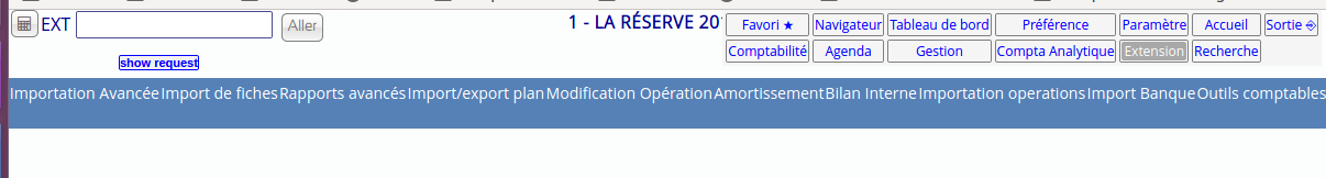 Je trouve dommage de limiter où que ce soit quoi que ce soit si une autre piste existe. (D'autant plus que, même dans les menus de base (ci-jointe, le menu dans «Gestion»), les boutons fusionnent.) Ici, ça pourrait être : — arrondir légèrement chaque bouton (comme dans le menu tout en haut à droite); — Ajouter un cadre plus sombre sur les bords des boutons; — le faire passer sur deux lignes tout en réduisant la hauteur des bouton (souvent excessive); — permettre de rassembler les boutons de menu dans un menu déroulant (exemple : un bouton menu déroulant «opérations» qui se déroule sur «Historique»-«Vente»-«Achat»-«Trésorerie»-«OD»). (P.S.: Quelles seraient les possibilités d'ajouter comme mode de navigation un menu déroulant latéral avec toute l'arborescence des menus? Il pourrait être placé en haut à gauche, juste sous la calculatrice et le menu type «chemin»; un peu comme les menus des sites récents – les trois petites barres dans un coin qui déroule un panneau avec le menu ou plan du site.) |