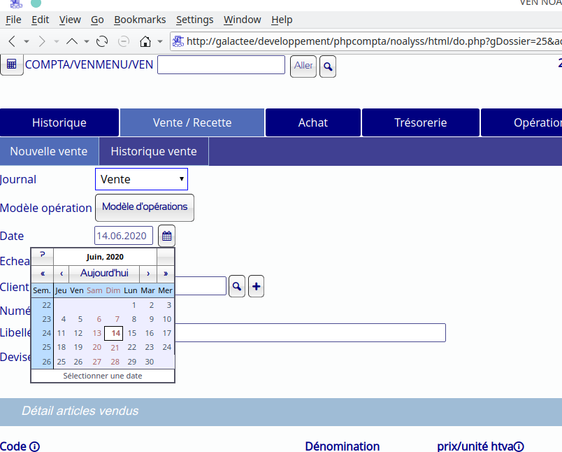 | Résumé | 0002057: Version 9.0 Noalyss : Affichage calendrier dans vente, achat ... dans firefox | ||||