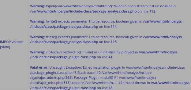 | Description | L'installation de l'extension IMPOP se bloque à 55% Voici plus bas, le message d'erreur en copie d'écran. | ||||
