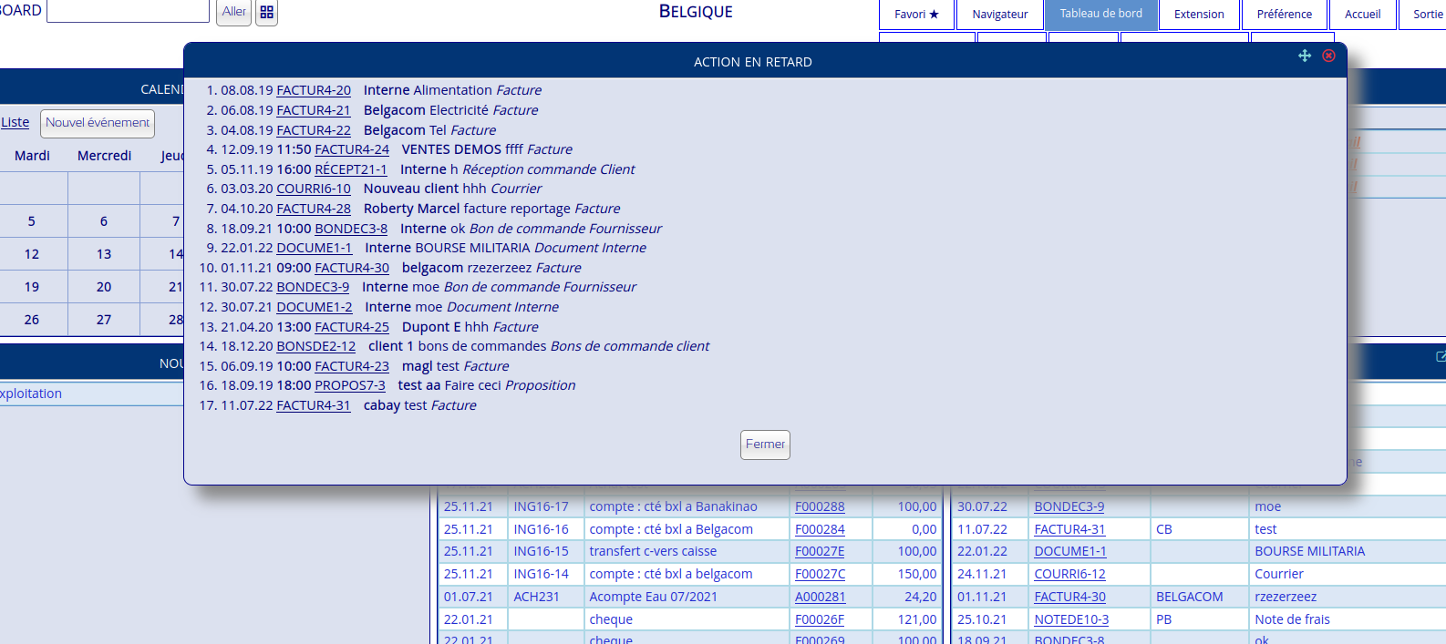 | Étapes pour reproduire | Table de bord : action (en retard, pour aujourd'hui) | ||||